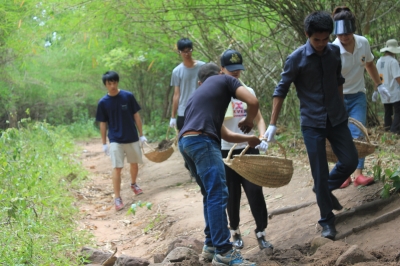 ワーク内容は、朝にコミュニティセンターから滝までの道を修理して